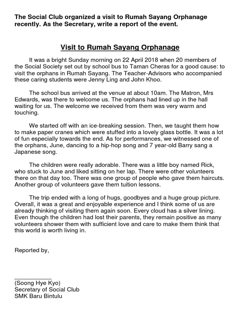 Breathtaking How To Write A Report On Visit To Orphanage